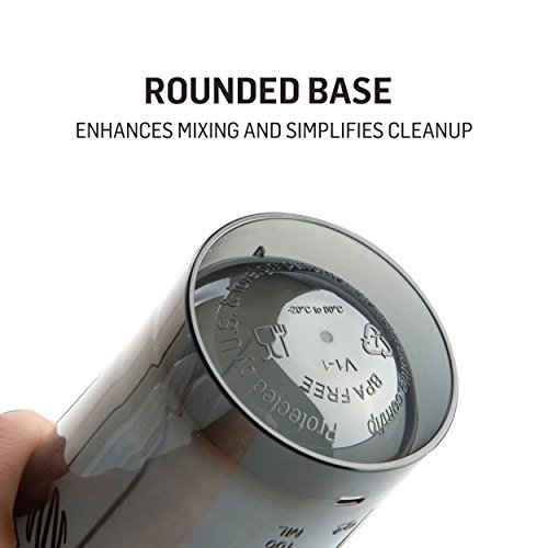 - Wide mouth makes it easy to add mix scoops and liquids, and embossed markings measure both ounces and milliliters; rounded base for thorough mixing