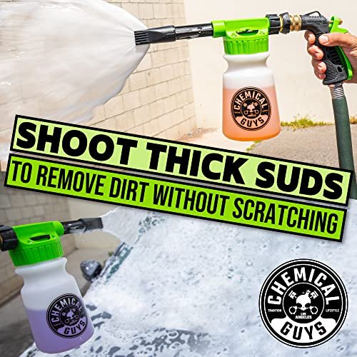 Details: Upgrade to the Chemical Guys Car Wash Bucket Kit With Foam Blaster 6 Foam Gun, and find out the professional detailer’s secret to the perfect scratch free shine at every car wash. Are you still washing your car with one bucket, dish soap, and old beach towels? It’s no wonder your car looks like it was painted with a broom Improper washing and drying is the leading cause of swirl marks and scratches, and lack of waxing promotes corrosion and clear coat failure. The Car Wash Bucket Kit With Foam Gun is the perfect combination of products to give any first timer, hardcore enthusiast, or professional detailer the perfect car wash every time.Use This To:Clean, shine, and protectRestore faded trims both interior and exteriorBreak down stuck-on dirt, grease, and grimeKeep plastic looking modern and newEffortlessly add gobs of deep gloss.