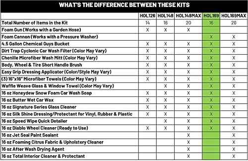• Amazing Value: If You Added up All 14 Pieces of This Kit, You Already Know That the Value Is Over 145 Dollars. Here Are the Great Products Included: Butter Wet Wax, Honeydew Snow Foam, Diablo Wheel Gel (Ready to Use), Silk Shine Dressing, Signature Glass Cleaner, Detailing Bucket, Cyclone Dirt Trap (color may vary), Torq Foam Blaster Foam Gun , Microfiber Wash Mitt (color may vary), Short Handle Brush, 3 Microfiber Towels (color may vary) & a dressing applicator (color may vary)Amazing Value: If You Added up All 14 Pieces of This Kit, You Already Know That the Value Is Over 145 Dollars. Here Are the Great Products Included: Butter Wet Wax, Honeydew Snow Foam, Diablo Wheel Gel (Ready to Use), Silk Shine Dressing, Signature Glass Cleaner, Detailing Bucket, Cyclone Dirt Trap (color may vary), Torq Foam Blaster Foam Gun, Microfiber Wash Mitt (color may vary), Short Handle Brush, 3 Microfiber Towel (color may vary) & a..