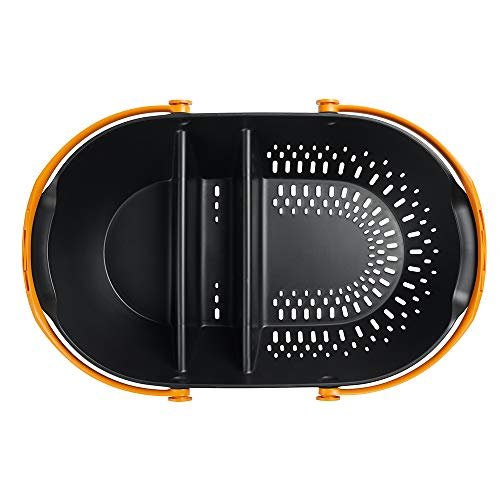 Details: Fiskars Garden Harvest Basket provides an easy, efficient way to collect, transport and clean your harvested produce and harvesting tools. With both a colander side and an enclosed side, you can separate food from tools and washed food from unwashed food. Freshly harvested produce can be hosed off or rinsed and soaked. Ergonomic side handles offer a comfortable way to carry large harvests with two hands, while separate folding handles interlock for one-handed use.