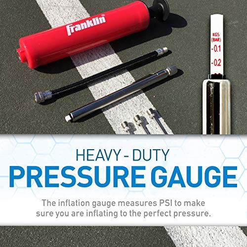 Franklin Sports Ball Pump Kit -7.5″ Sports Ball Pump with Needle – Perfect for Basketballs, Soccer Balls and More – Complete Hand Pump Kit with Needles, Flexible Hose, Air Pressure Gauge and Carry Bag