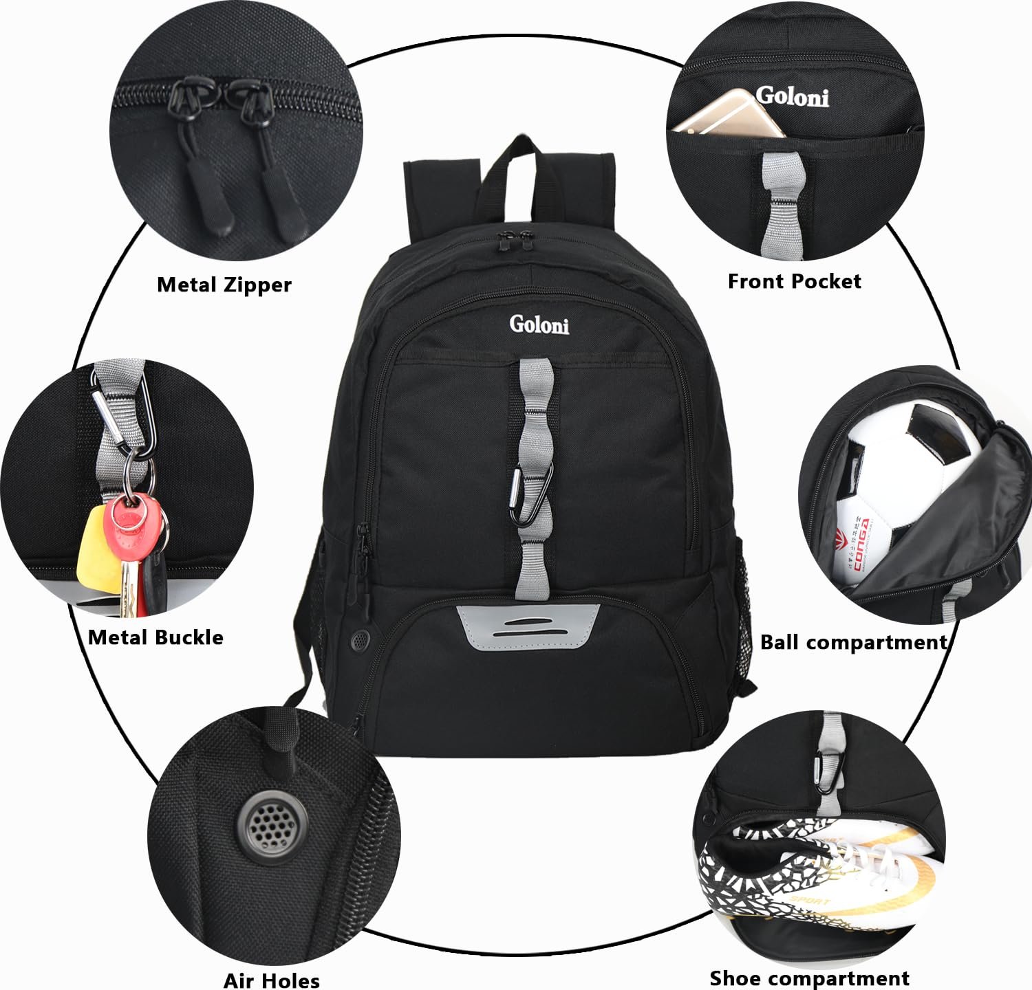 Goloni | Youth Basketball Soccer Backpack Bag – Soccer Backpack & Bags for Basketball, Volleyball & Football Sports, Includes Separate Cleat Shoe and Ball Compartment