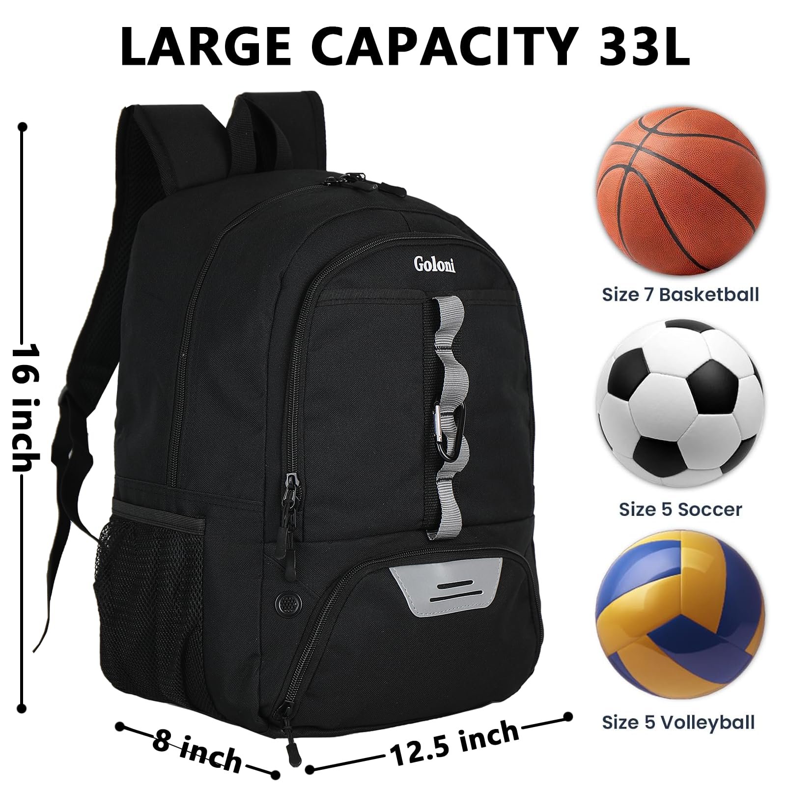 Details: Goloni | Small Basketball Soccer Backpack Bag – Soccer Backpack & Bags for Basketball, Volleyball & Football Sports, Includes Separate Cleat Shoe and Ball Compartment, fit to & Adult