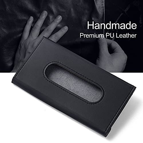 HZAZF Car Tissue Holder, [Upgraded Version] Hanging Tissue Holder for Car, Premium PU Leather Car Tissue Holder Visor for Universal Auto, Easy Use (Black)