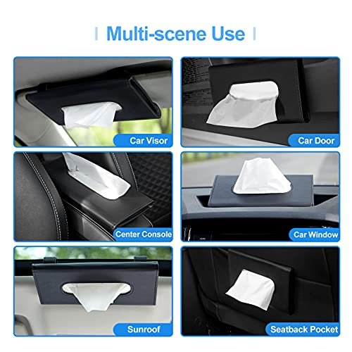 - REUSABLE AND WIDE APPLICATION – The car tissue holder is self-adhesive can be used repeatedly, easy to open, and refill with new tissue. Car visor tissue holder can be used on car visor, car door, center console, dashboard, sunroof, seatback pocket.