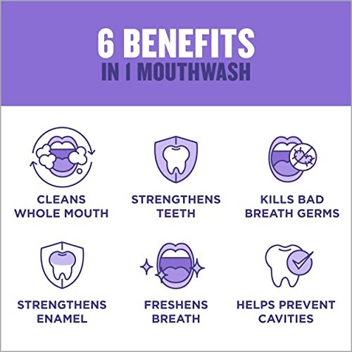 - 6-IN-1 BENEFITS: Fluoride-rich mint mouthwash offers six dental hygiene benefits in one oral rinse to kill germs that cause bad breath, strengthen teeth, help prevent cavities, restore enamel, clean your mouth and freshen breath