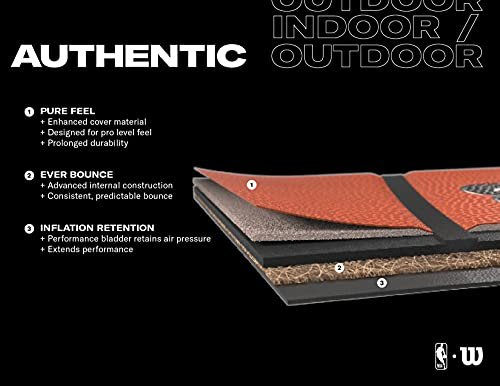 Details: When high-performance meets high-demand, authentic NBA experiences can happen anytime, anyplace. The Wilson Authentic Indoor/Outdoor Basketball is assembled with Ever Bounce Construction and Inflation Retention Lining built to endure, while delivering consistent, predictable bounce over time. Finished with the Pure Feel Cover designed for the pro-level feel.